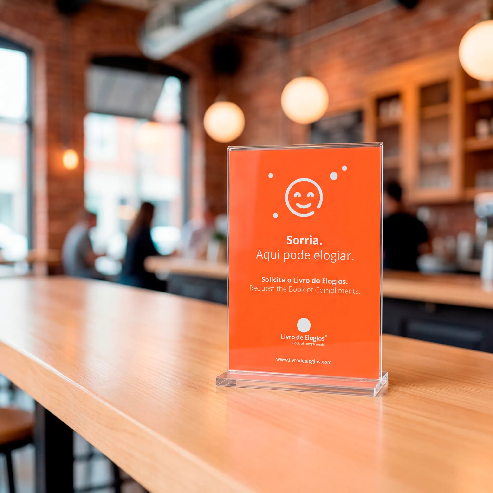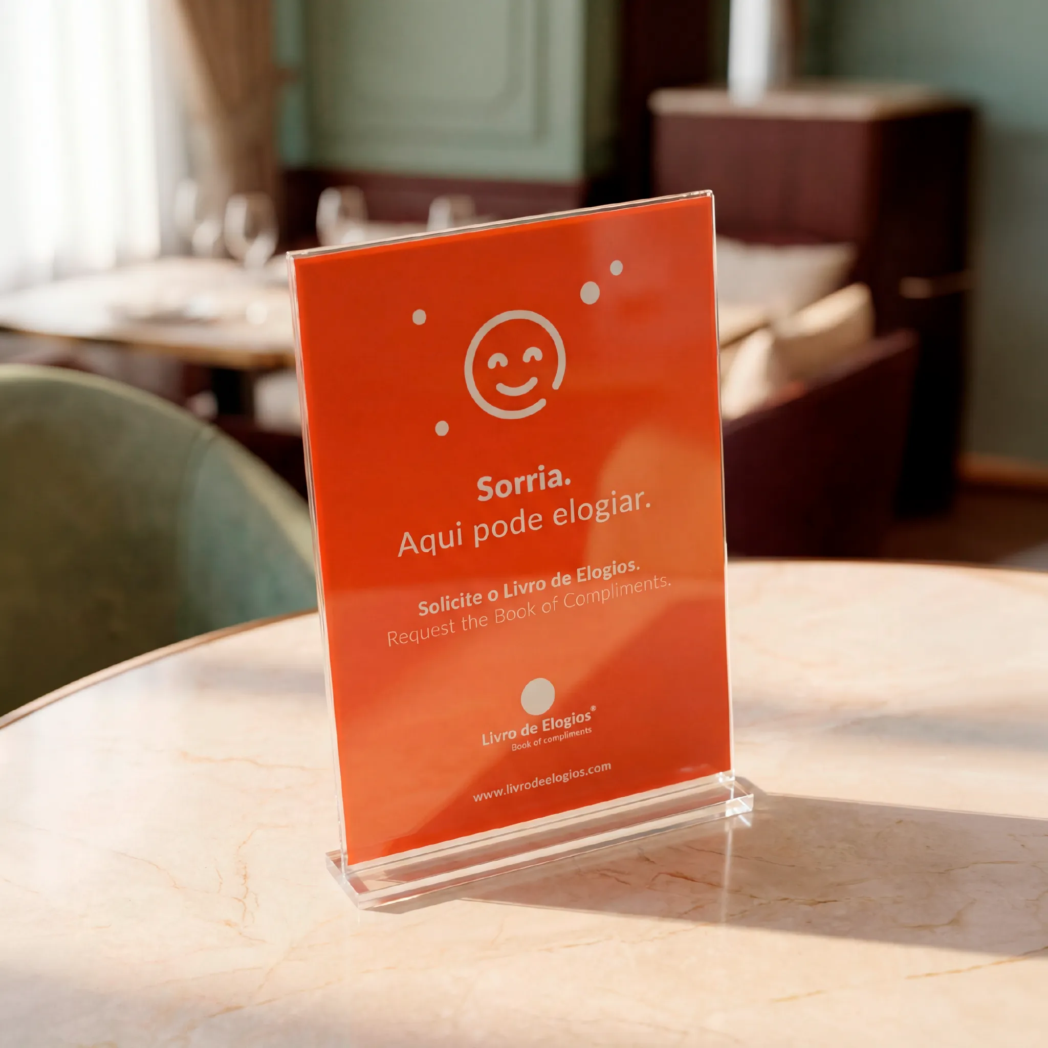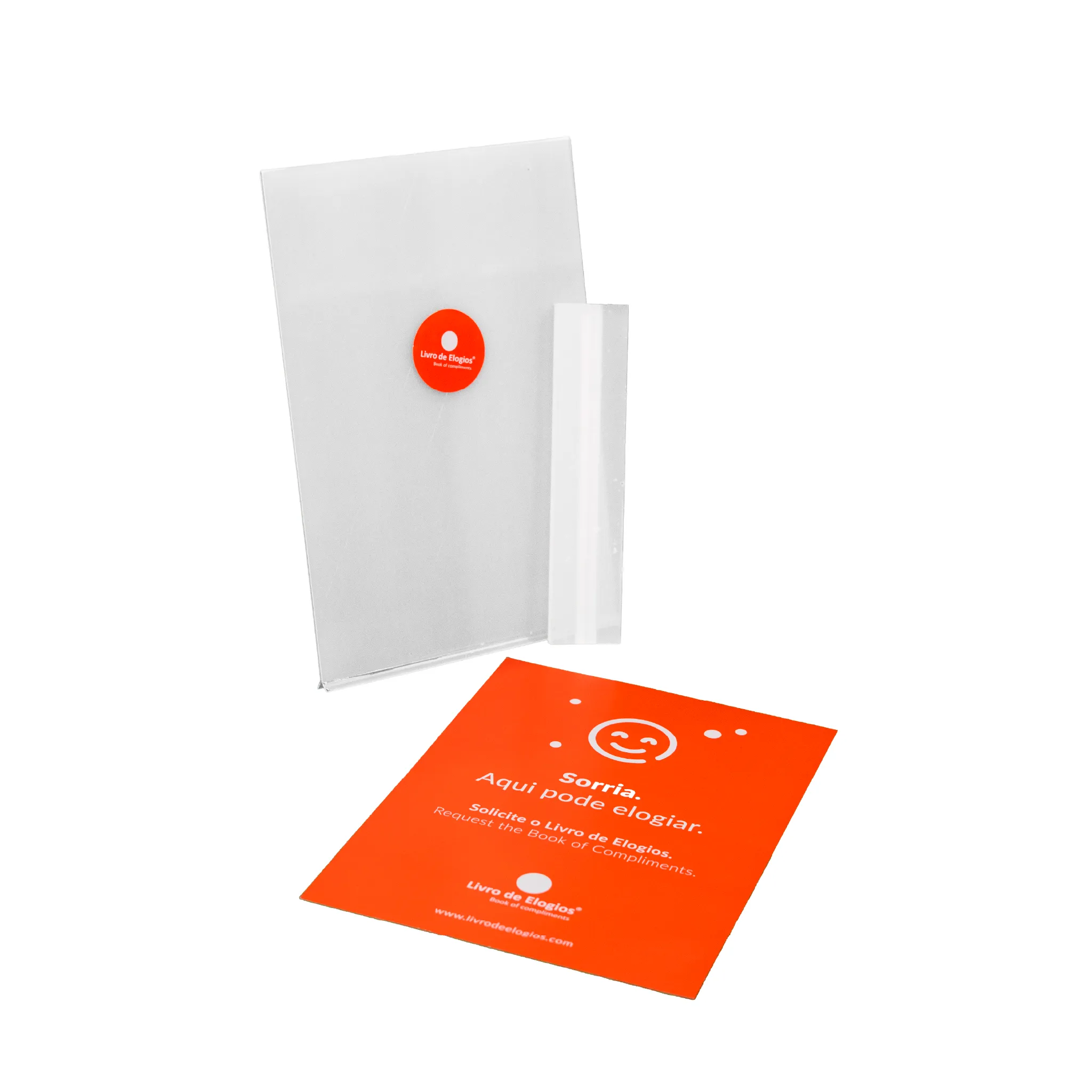 Ao adquirir o Livro de Elogios em formato físico, recebe de oferta um cartaz A4 e um autocolante em vinil para o vidro do seu estabelecimento.